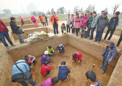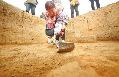 随后,考古专家组织志愿者们拿起手铲,亲手体验挖掘的“乐趣”,大家纷纷走下遗址探方,小试身手。“没想到挖起来这么费劲,冬天的土被冻得很硬。”志愿者们一边体验,一边交流着感受。