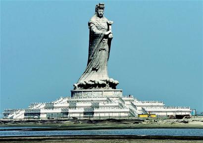 高42.3米的全球最高妈祖像矗立在渤海岸边