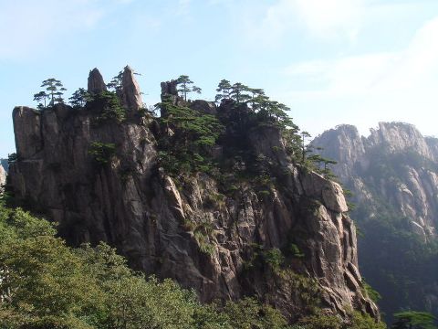 天都峰顶是三面冰斗刨蚀遗留下来的角峰